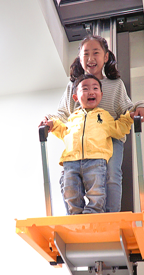 사용할 수 있는 엘리베이터형 무동력 시스템으로 법정 화재대피시설입니다.